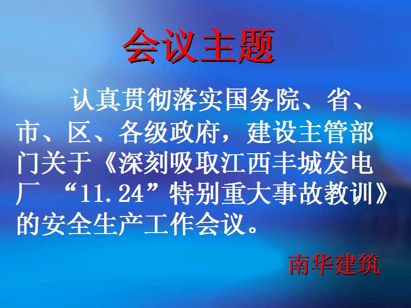 三、各項(xiàng)目部認(rèn)真貫徹這次會(huì)議精神,立即組織一次專題安全活動(dòng):