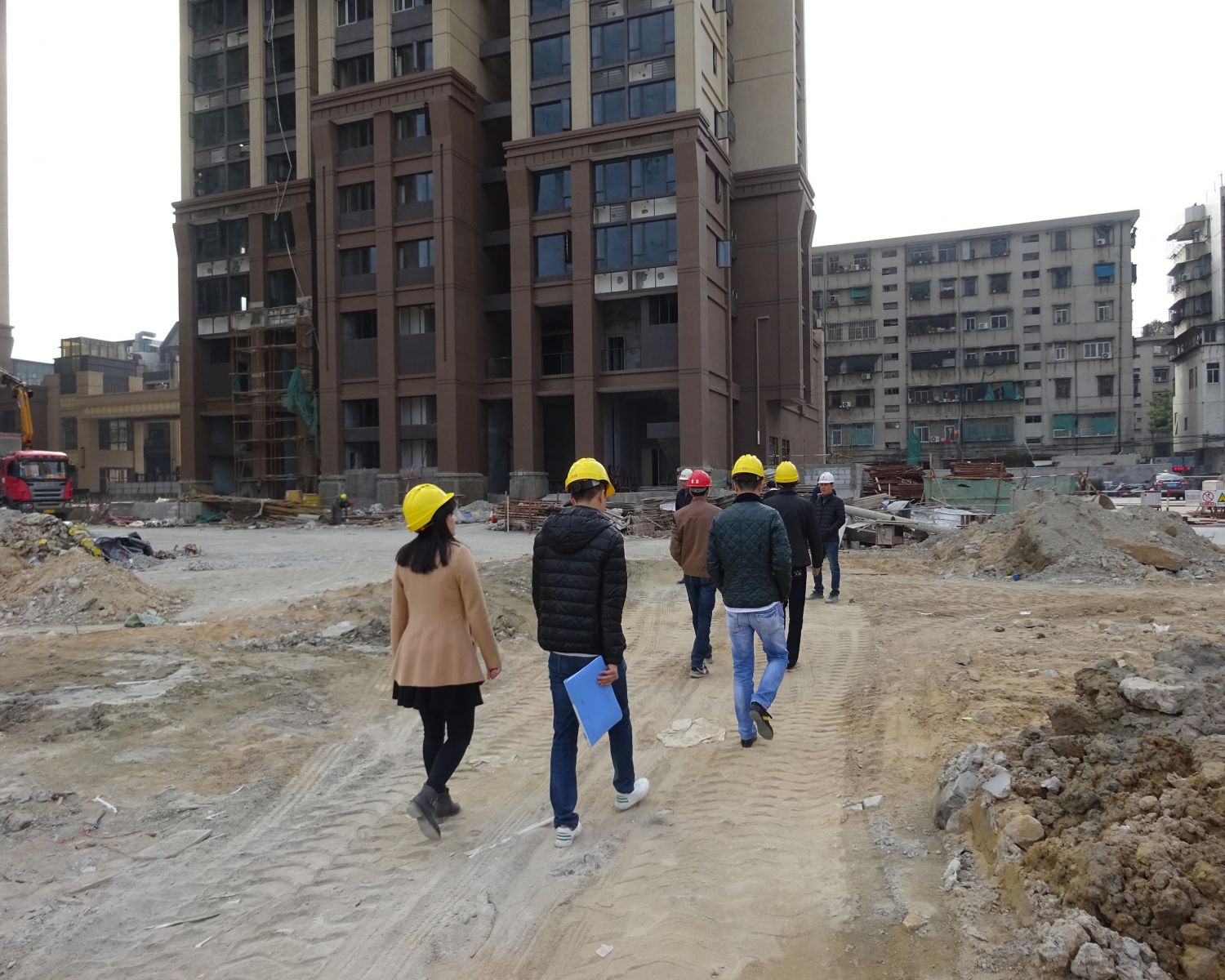 4 | 東泰城市花園 | 全部封頂,磚墻完成約90%,內(nèi)外墻抹灰進行中。 | 查資料、實測、安全生產(chǎn) |