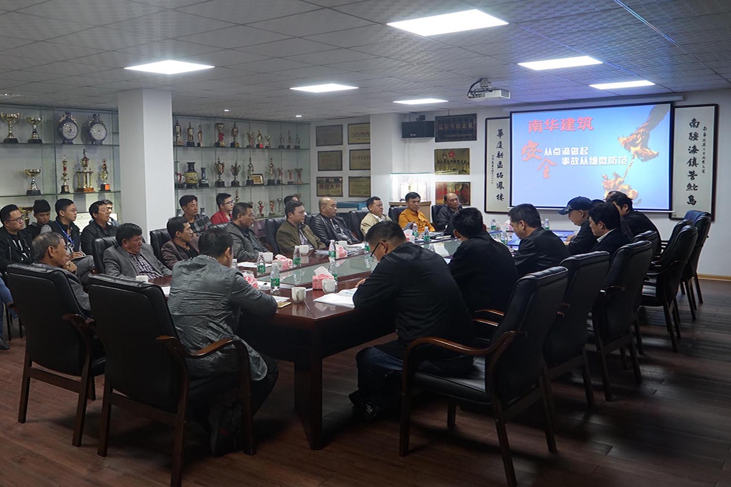11月29日,公司組織公司職員、在建項目部負責(zé)人以及相關(guān)人員在公司會議廳召開安全生產(chǎn)緊急會議,認真貫徹落實國務(wù)院、省、市、區(qū)、各級政府安全生產(chǎn)工作緊急視頻會議精神、建設(shè)主管部門關(guān)于《深刻吸取江西豐城發(fā)電廠“11.24”特別重大事故教訓(xùn)》文件精神。會議上,公司部門負責(zé)人對承建的在建項目的安全及進度情況進行匯報,分析工程施工上需嚴格加強防范的各個重大危險源,指導(dǎo)安全生產(chǎn)技術(shù)措施,提出具體安全安排措施,要求各項目按照以下要求切實抓好公司安全生產(chǎn)工作: