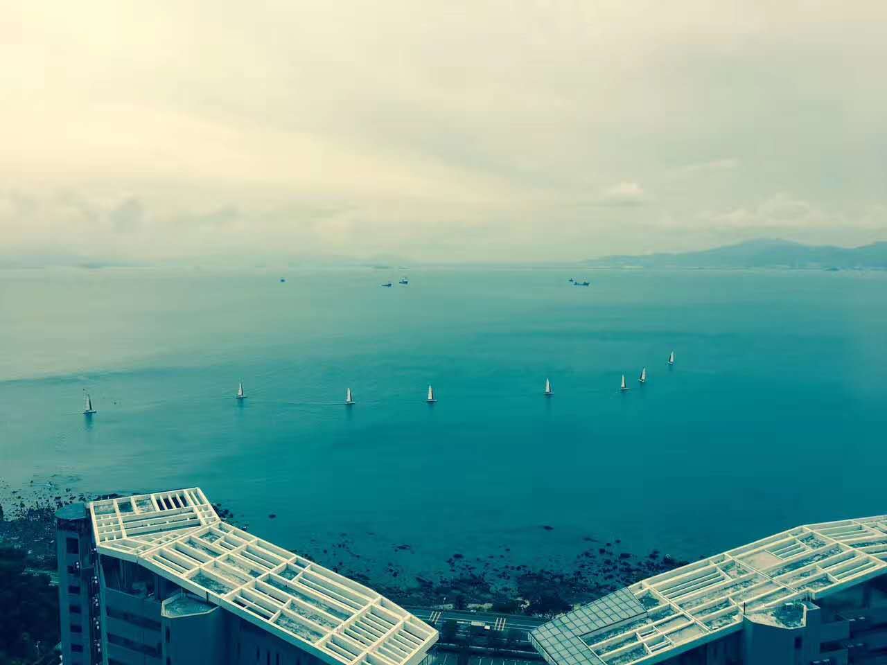 入住的酒店可謂是“面朝大海,春暖花開”。站在陽臺(tái)放眼望去,海天一線盡收眼底。