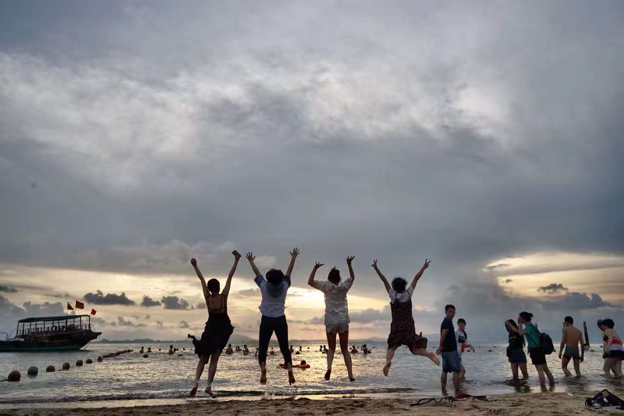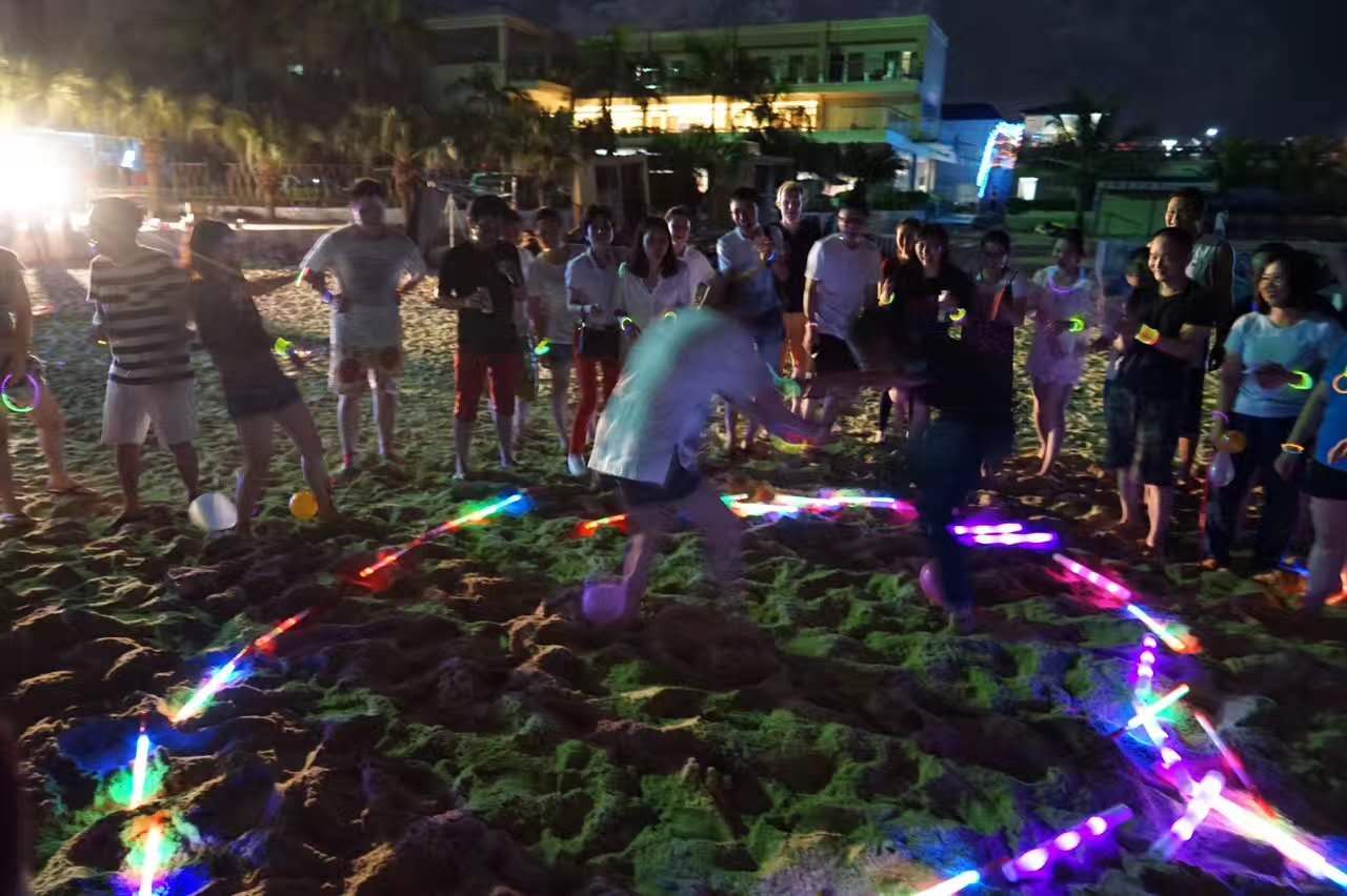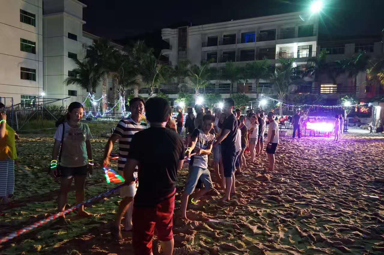 金銀灘沙灘,欣賞海上落日的美景,在沙灘上享用美味的燒烤晚餐,并舉行煙花篝火晚會(huì),大家圍著篝火歡快舞蹈。晚會(huì)中進(jìn)行了拔河比賽,大家分組對陣,摩拳擦掌,熱情高昂,齊心協(xié)力為自己的團(tuán)隊(duì)爭光,吶喊助威的聲音此起彼伏,引得旁人駐足觀看,齊聲為我們的團(tuán)結(jié)精神喝彩。此外還有兩人三足、踩氣球等游戲項(xiàng)目,大家踴躍參與,玩得不亦樂乎。