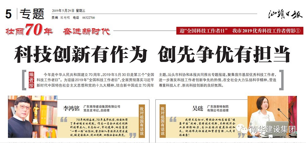 每年的5月30日是全國科技工作者的節(jié)日,在第三個國家科技工作者日到來之際,李鴻銘總經(jīng)理榮獲“汕頭市優(yōu)秀科技工作者”稱號。