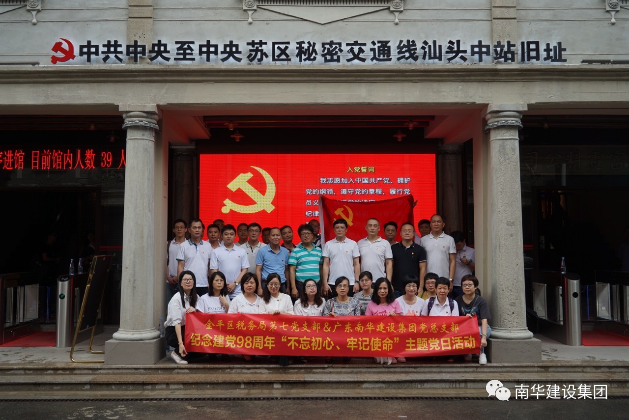 6月28日,廣東南華建設(shè)集團(tuán)有限公司與金平區(qū)稅務(wù)局第七黨支部組織黨員到位于小公園街區(qū)的“中共中央至中央蘇區(qū)秘密交通線汕頭中站”舊址進(jìn)行參觀。