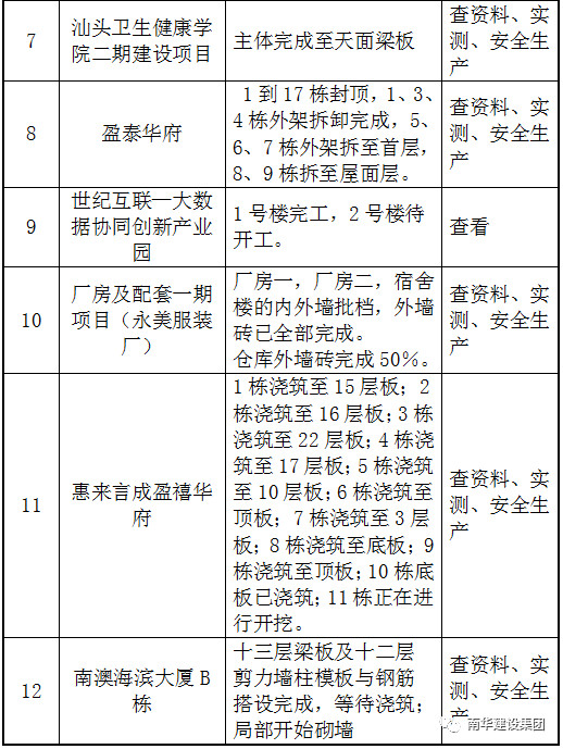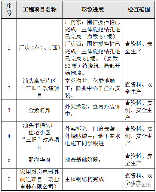 根據(jù)現(xiàn)階段工程項(xiàng)目形象進(jìn)度,本次季度檢查對(duì)各階段項(xiàng)目工程檢查如下: