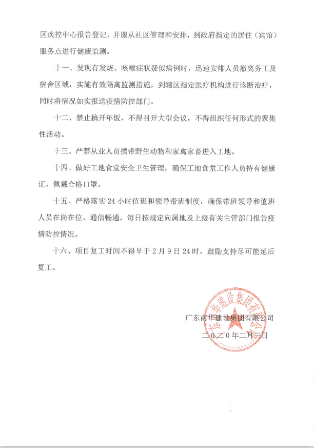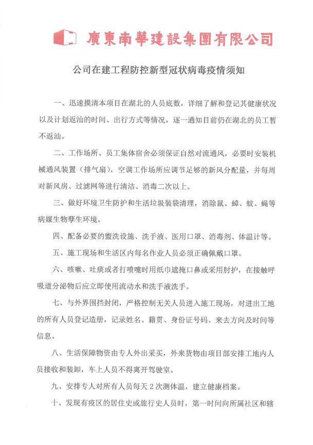<<廣東南華建設(shè)集團有限公司復工復產(chǎn)應(yīng)對新型冠狀病...