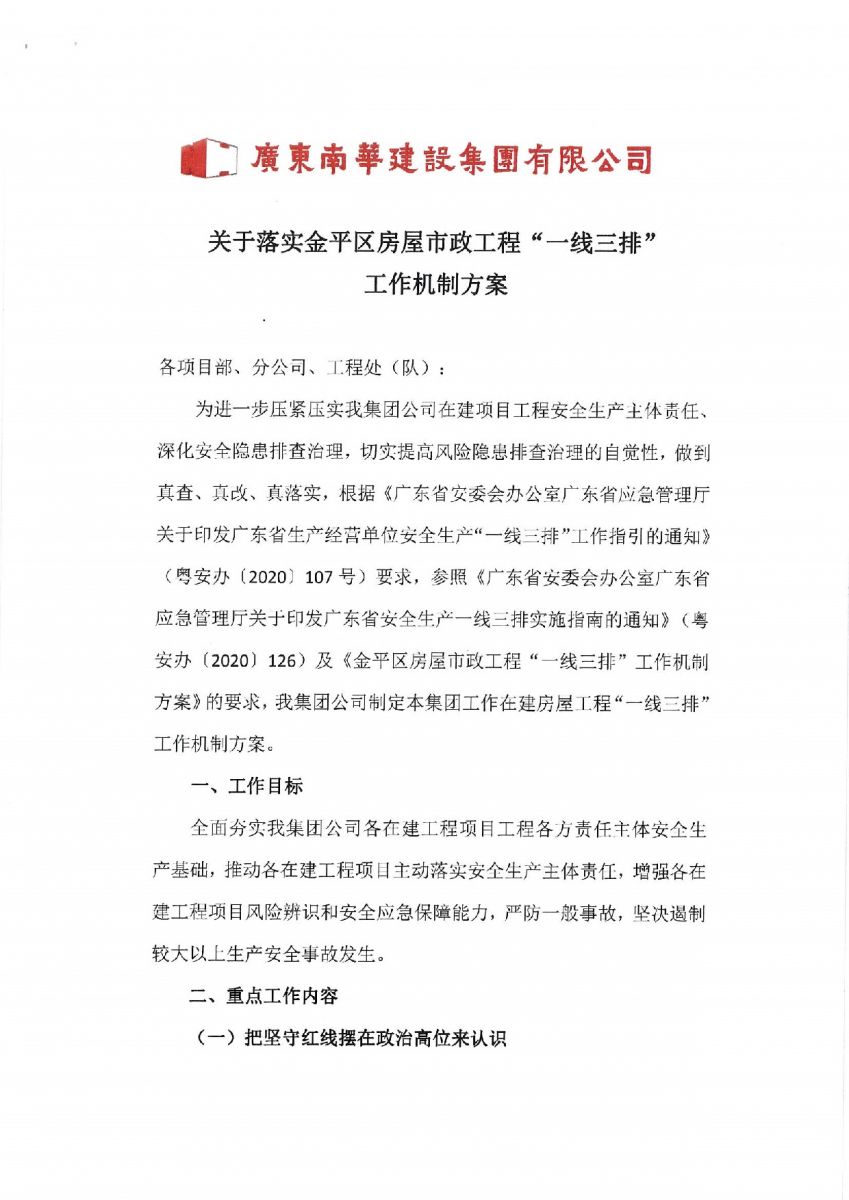 廣東南華建設(shè)集團(tuán)有限公司關(guān)于落實(shí)金平區(qū)房屋市政工程“一線三排”工作機(jī)制方案