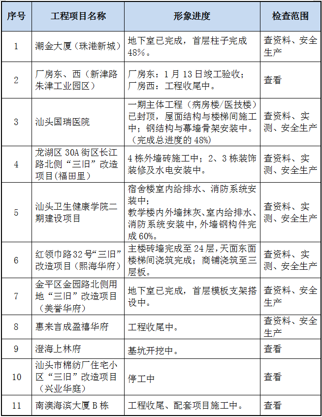 按照集團(tuán)公司定期檢查部署,公司于3月24日至26日組織了2021年第一季度質(zhì)安大檢查、公司定期檢查及復(fù)工復(fù)產(chǎn)大檢查,檢查共三天。本次檢查,各工地的項目負(fù)責(zé)人能重視,有關(guān)人員能在工地配合檢查,現(xiàn)將檢查情況總結(jié)如下:
