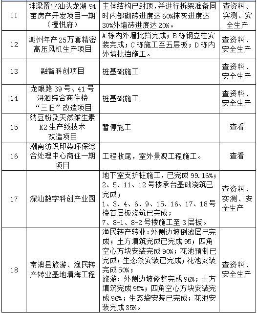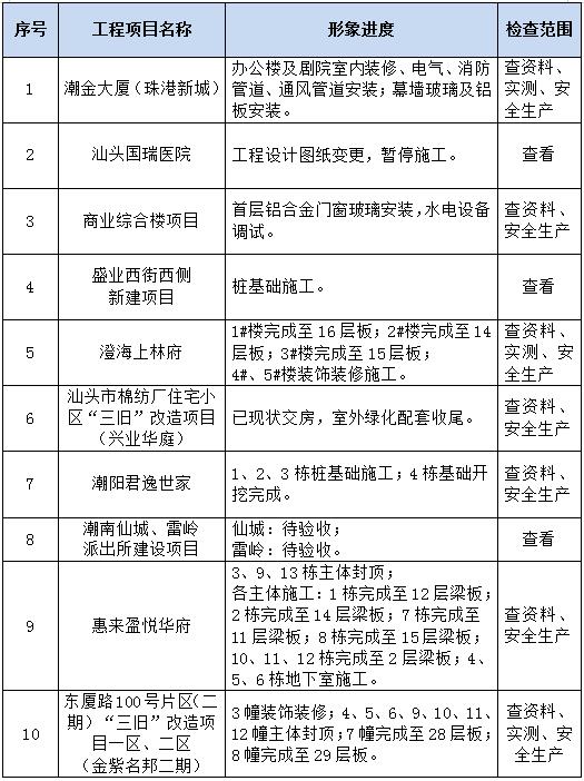 根據(jù)《汕頭市建筑工地腳手架工程專項整治工作方案》的要求,集團(tuán)公司對在建項目腳手架工程進(jìn)行了專項檢查,各在項目腳手架工程均能按規(guī)范及施工方案搭設(shè),臨邊防護(hù)及外架與建筑物之間水平防護(hù)均能按規(guī)范做好相關(guān)防護(hù)措施,防護(hù)安全網(wǎng)及扣件均能按要求檢測,檢測結(jié)果均合格方可使用,對于檢查過程中發(fā)現(xiàn)的個別安全隱患已要求相關(guān)項目落實整改責(zé)任人、確定整改措施予以及整改。在《全省安全生產(chǎn)專家飛行檢查的通知》及《廣東省城鄉(xiāng)住房建設(shè)廳巡查組抽查房屋市政安全專項檢查》的抽查過程中均受到上級部門的認(rèn)可,也指出了項目管理的不足,我們將專家檢查意見匯總后落實到所有各在建項目進(jìn)行自查補(bǔ)漏。
