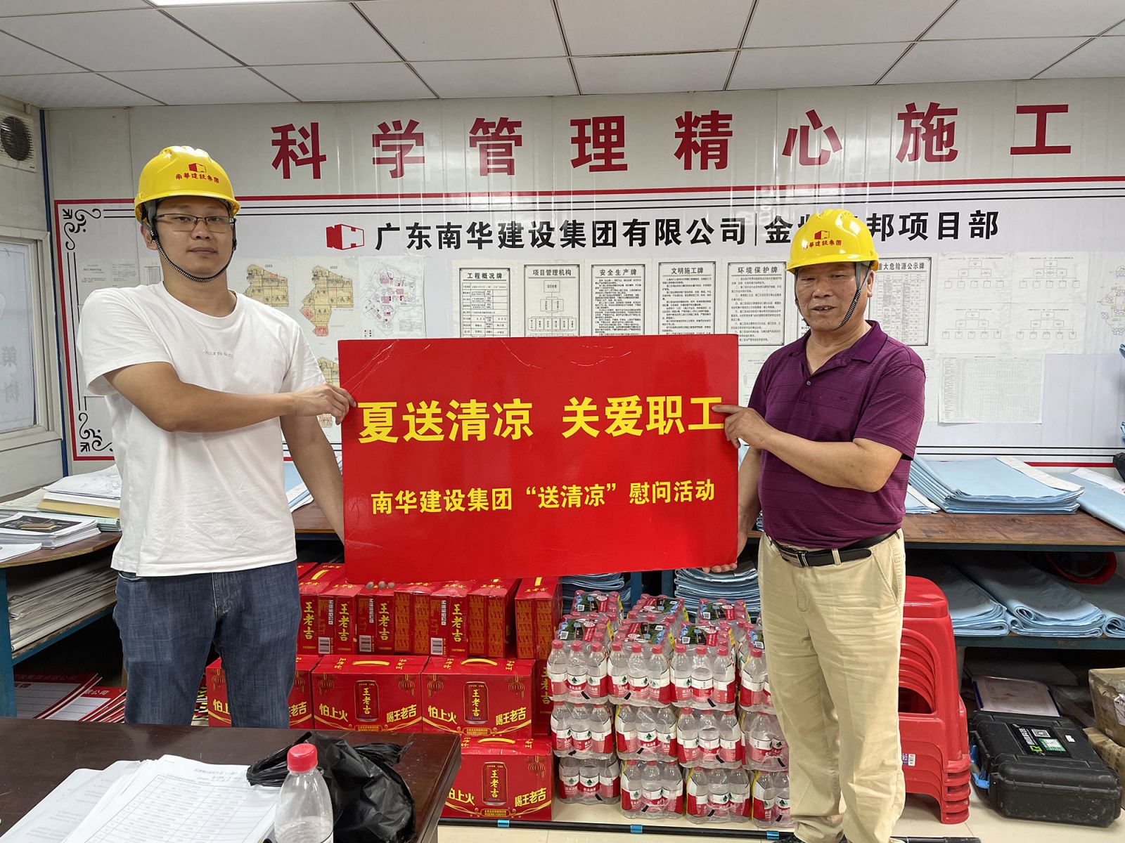 隨著氣溫不斷升高,在炎炎的酷暑下,驕陽似火的夏日中,為保障現(xiàn)場操作工人身體健康,確保安全生產(chǎn),集團(tuán)公司堅持以人為本理念,認(rèn)真把一線員工的防暑降溫工作做到實處,為讓奮戰(zhàn)在工地一線的施工作業(yè)人員過一個清涼的夏天,近日,集團(tuán)公司工會組織開展“建筑工地送清涼”活動,向在建工程項目的施工作業(yè)人員送上涼茶等防暑降溫物品,給在夏日里仍堅守崗位的建設(shè)者送上絲絲涼意和關(guān)懷。