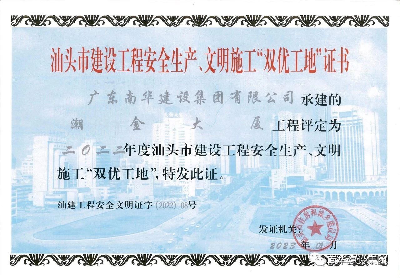潮金大廈榮獲“廣東省建設(shè)工程優(yōu)質(zhì)結(jié)構(gòu)獎(jiǎng)”和“汕頭市安全文明雙優(yōu)工地”