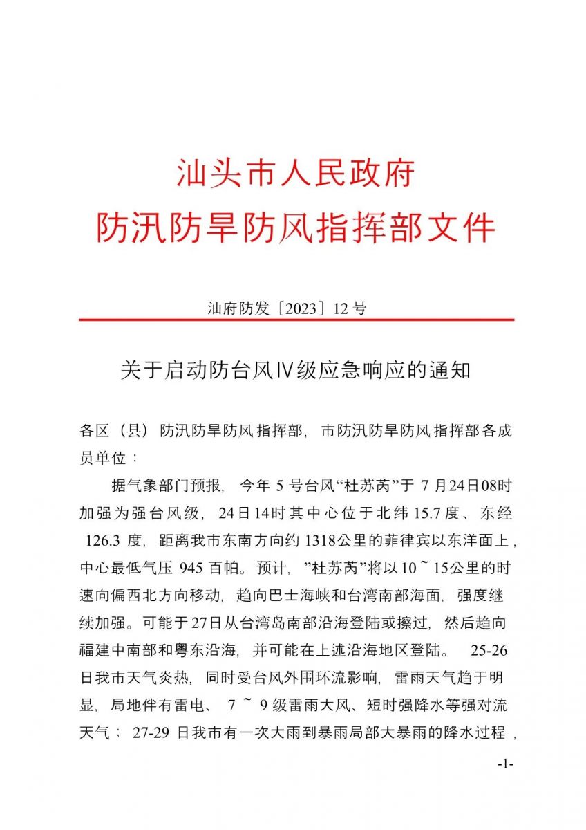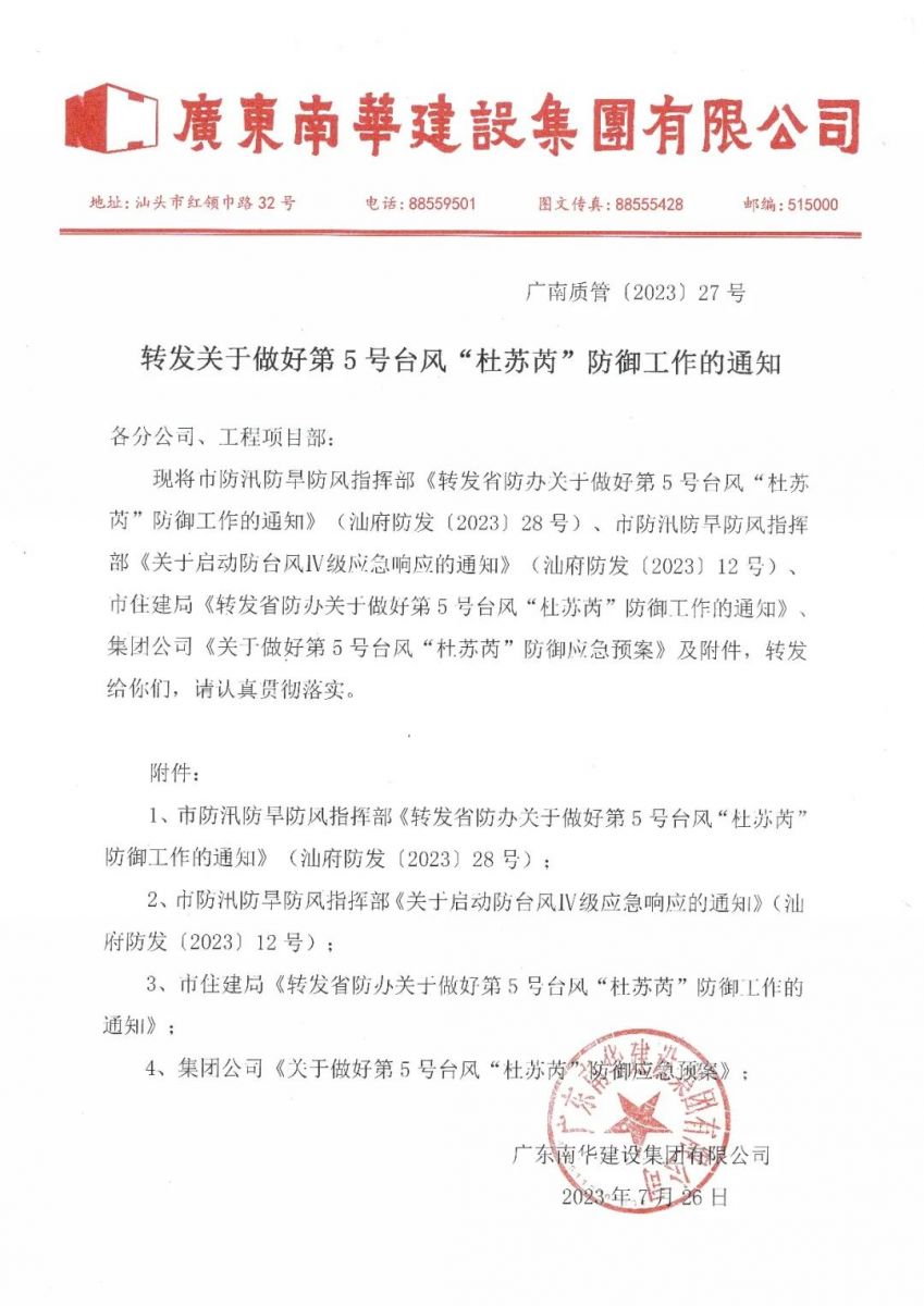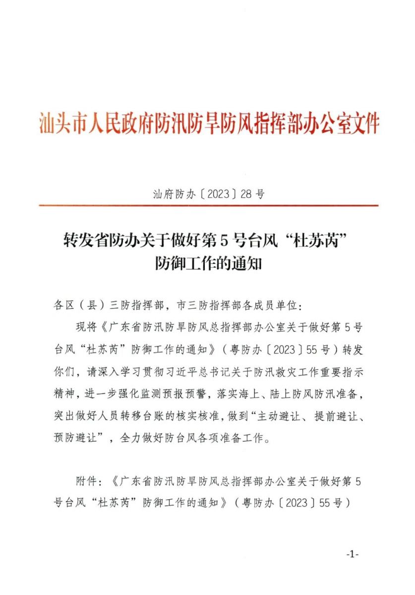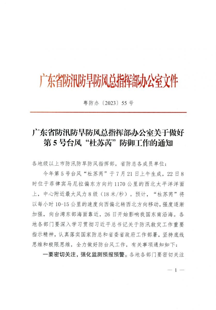 關于做好第5號臺風“杜蘇芮”防御應急預案>>