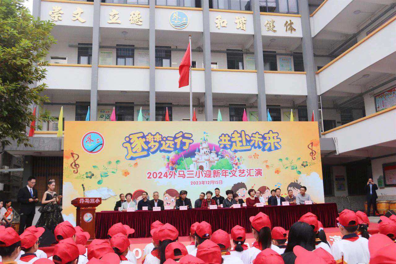 “逐夢遠行 共赴未來”——外馬三小2024年迎新年文藝匯演于12月15日下午在學(xué)校操場隆重舉行。此次活動是學(xué)校第一次進行現(xiàn)場直播,實現(xiàn)全校教師、學(xué)生、家長和退休教師同步觀看演出。光華璀璨的舞臺,酣暢淋漓的歌舞盛會,見證了外馬三小師生對新年的期盼與祝愿。