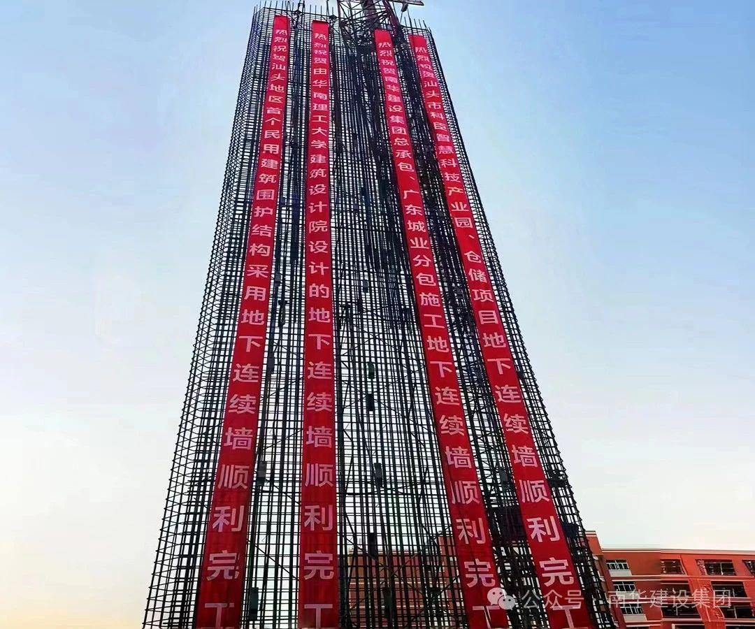 由集團(tuán)公司承建的“科臣智慧科技產(chǎn)業(yè)園倉儲項目”,圍護(hù)結(jié)構(gòu)采用鋼筋混凝土地下連續(xù)墻+內(nèi)支撐體系,實現(xiàn)“兩墻合一”,相對于傳統(tǒng)的先做支護(hù)再做地下室結(jié)構(gòu)外墻的做法,可縮短工期,降低造價。該工程位于汕頭市泰山南路東側(cè),總建筑面積104046.20m²,基坑開挖深度約9.2m,連續(xù)墻墻身平均長度38米,墻身底部伸入軟土層(地下土體結(jié)構(gòu)第6層)2米,連續(xù)墻切斷第4層(砂土層)中的承壓水,防止基坑開挖過程中出現(xiàn)坑底突涌,由于軟土層滲透系數(shù)小可以充當(dāng)不透水層,連續(xù)墻和軟土層形成近似封閉的立體隔水空間,提高了建筑物永久地下室的防水性能,并保證了基坑工程開完過程的周邊環(huán)境水土平衡和穩(wěn)定性。連續(xù)墻在汕頭地區(qū)的應(yīng)用案例較少,同樣的地質(zhì)條件可以借鑒的工程項目相對稀缺,因此需不斷在實踐中摸索與改進(jìn)相關(guān)施工工藝。