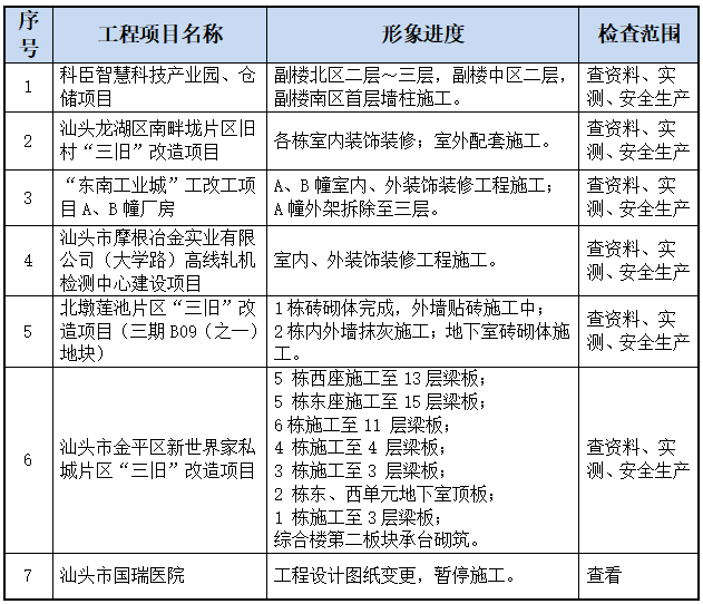 本季度正值于汛期、高溫、強降水及臺風(fēng)高發(fā)階段,要求各在建項目在此階段認真做好會商研判、檢測預(yù)警、群防群治等各項工作,嚴格落實防臺風(fēng)“六個百分百”的相關(guān)規(guī)定,強化建筑工地防風(fēng)防雨、安全管理,進一步提高各項目臺風(fēng)防御工作。針對各項目特點做好重點部位、重點區(qū)域建立風(fēng)險臺賬、隱患清單,及時開展排查治理,切實強化各項目應(yīng)急管理和安全教育工作。集團公司本季度重點對在建項目建筑起重機械、深基坑、高處墜落、預(yù)防坍塌、臨時施工用電和施工消防安全等工程分別進行了專項檢查,重點檢查以下專項工程的落實情況: