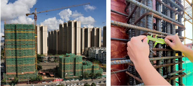 根據(jù)現(xiàn)階段工程項目形象進度,集團公司開展在建工程項目實體質(zhì)量抽查抽測進一步強化工程實體質(zhì)量監(jiān)管。對主體施工階段的檢查項目:“北墩蓮池片區(qū)‘三舊’改造項目(三期B09(之一)地塊)”、“東南工業(yè)城工改工項目A、B幢廠房”及“汕頭市金平區(qū)新世界家私城片區(qū)‘三舊’改造項目”分別進行了主體結(jié)構(gòu)混凝土回彈法測試、現(xiàn)澆混凝土結(jié)構(gòu)觀感質(zhì)量及尺寸偏差、垂直度實測;混凝土強度采用回彈儀現(xiàn)場隨機抽檢,經(jīng)計算后能滿足設(shè)計要求;平整度及垂直度實測,每個主體結(jié)構(gòu)階段項目的構(gòu)件抽查情況:混凝土強度共6批次,合計30個構(gòu)件;平整度共6批次,合計60點;垂直度共6批次,合計60點,合格率均在90%以上,滿足規(guī)范要求。對鋼筋直徑、間距隨機抽查,合格率為100%,滿足規(guī)范要求。