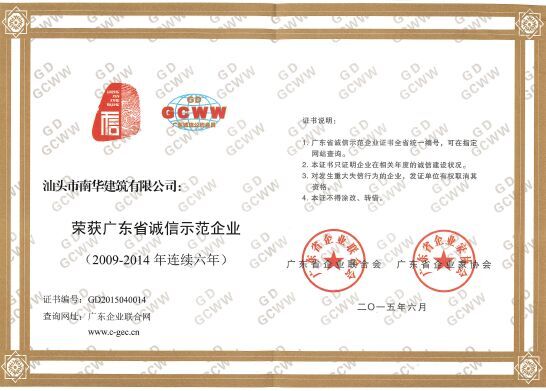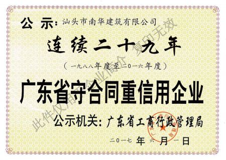 廣東省連續(xù)六年誠信示...