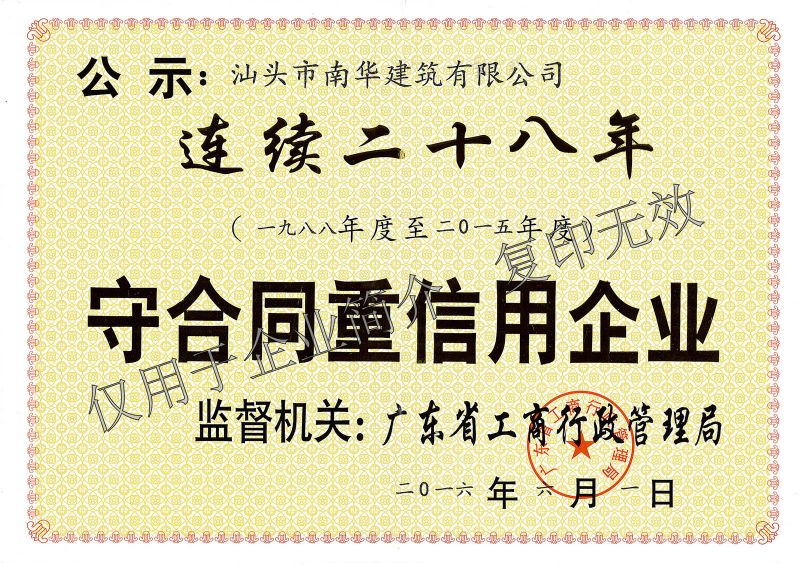 連續(xù)28年守合同重信用企業(yè)