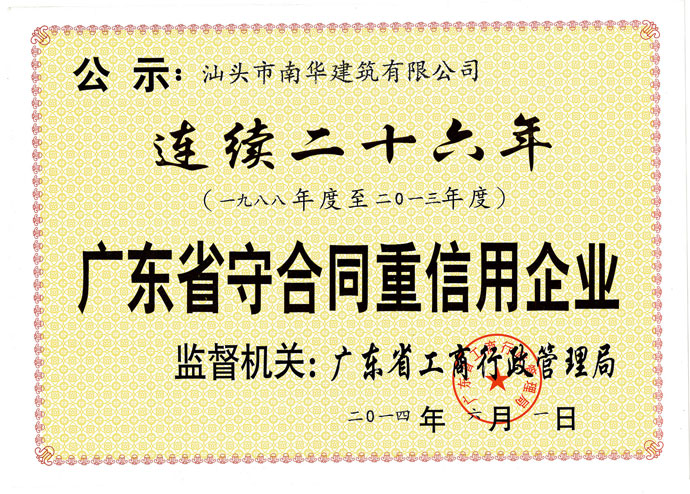 連續(xù)26年守合同重信用企業(yè)