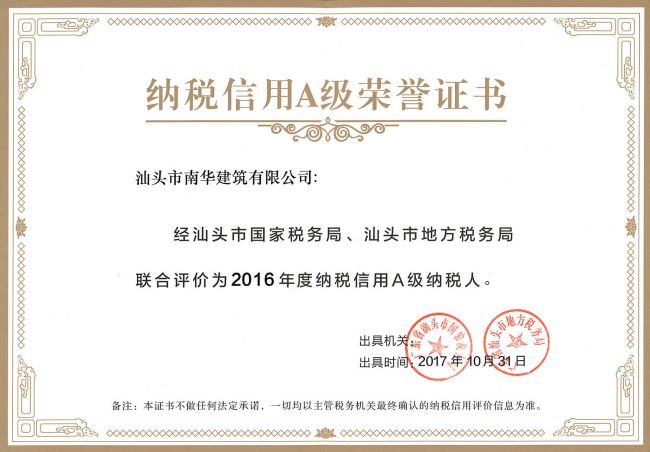 2016年度A級(jí)納稅人