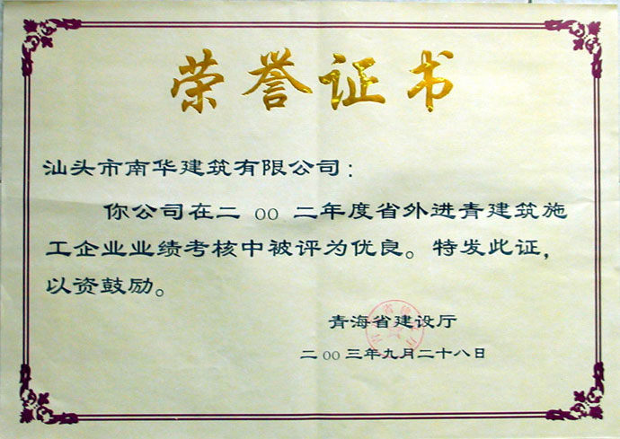 先進(jìn)施工企業(yè)