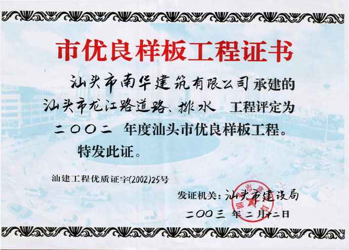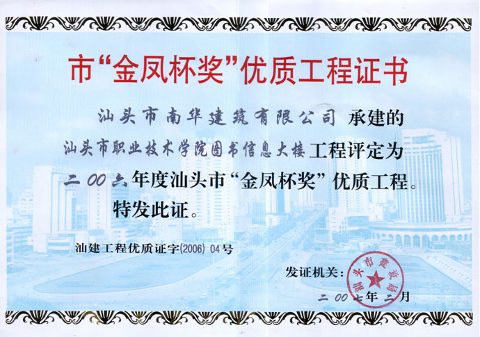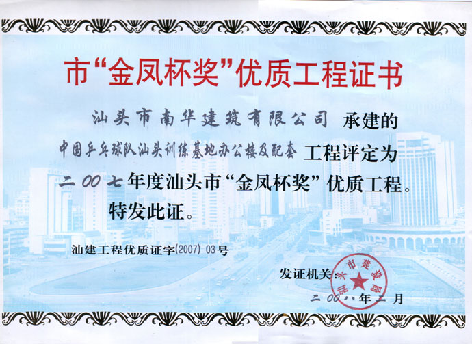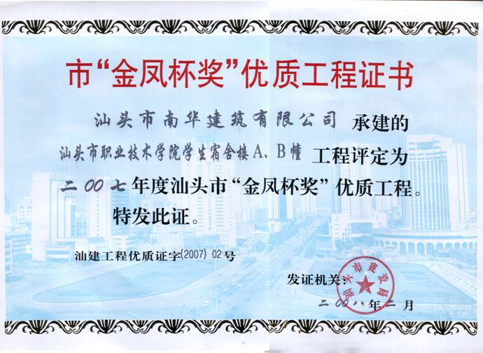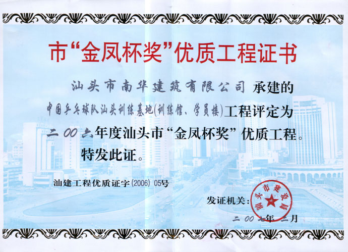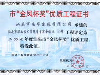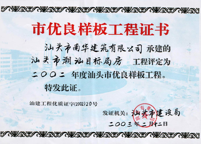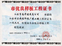 汕頭市潮陽目標(biāo)局房 市優(yōu)良證書