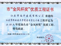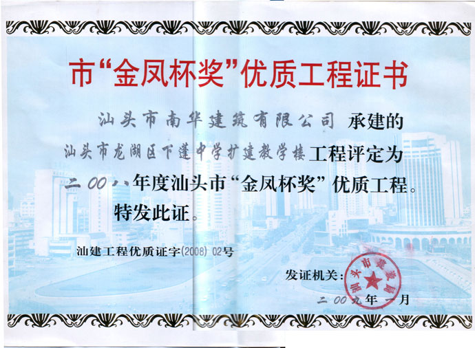 下篷中學(xué)擴建教學(xué)樓金鳳杯證書