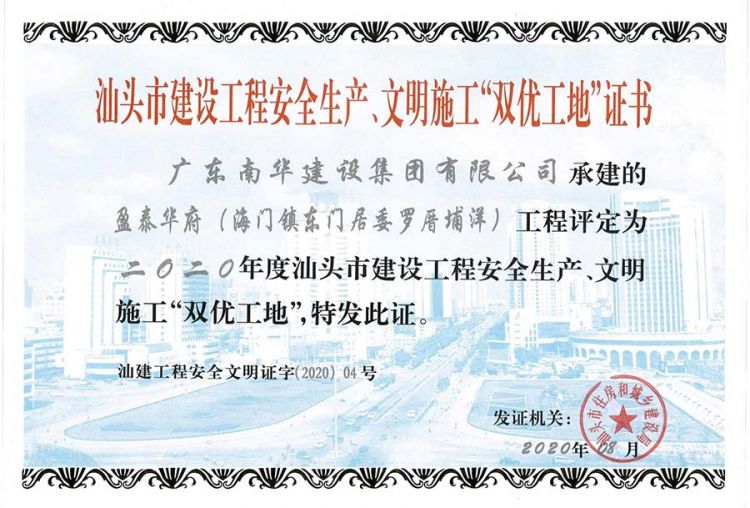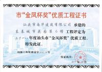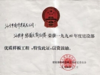 東泰城市花園省優(yōu)質(zhì)工程獎證書