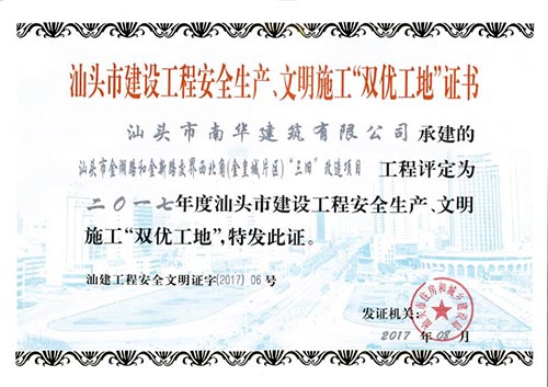 中信濱江熙岸一期雙優(yōu)工地獎狀